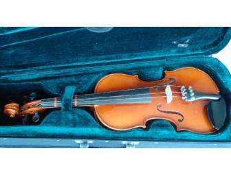 New owners would need to replace the strings, have the bow re-haired, and purchase a shoulder rest.