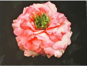 Attractive photo of Pink flower with green center on black background. 19 3/4" x 15 3/4"