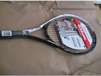 Bid on a Wilson Tour Slam Tennis Racket with 4 1/4" grip and 110" headsize. Excellent for beginning ladies or teenagers.