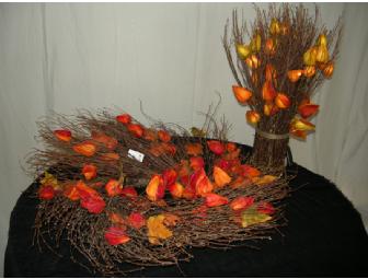Create a warm, festive atmosphere in your home with these harvest branches with lighted accents. The festive floral wreath and matching bouquet each has LED lights in the buds that can be turned on and off with a simple switch.