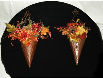 Create a tranquil yet festive indoor autumn garden with these Autumn Wall Garden Sconces! These two decorative holders are filled with gorgeous dahlias, maple and eucalyptus leaves, wild acorns and forest berries!