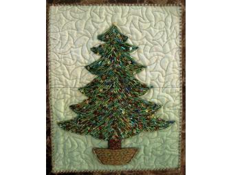 8 1/2" x 11". Tree is hand beaded and background is free motion quilted.