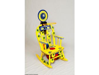 Child's rocking chair hand-painted by Sarah Senff. The chair includes signatures from all members of the 2012-2013 Pacer's Team. This chair is made of solid wood and is 15x13x29"H.