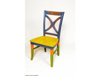This chair was hand-painted by Chris Bowman. The chair is made of solid wood and is 17x21x39"H.