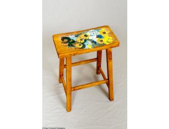 This stool is hand-painted by Sharon Strecker. It is made of solid wood and is 17.5x9x24"H.