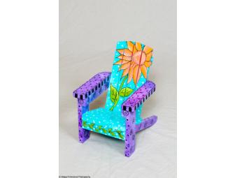 This is a doll chair that has been hand-painted by Christy Shriner of Syracuse, IN. The chair is made from solid wood and is 8.5x13.15”H.