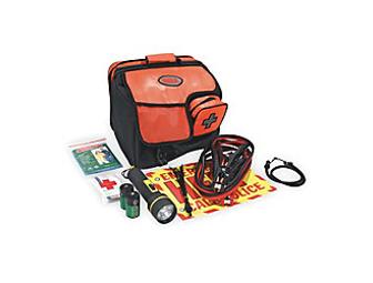 Emergency Road Kit, 55 Piece, Includes (1) 8 Ft, 10 ga. Booster Cable, (1) 2-In-1 Screwdriver, (10) Cable Ties, (2) Cloth Gloves, (1) Flashlight, (2) D Batteries, (1) Help Sign, (1) 24 In Tie Down, (1) Rain Poncho, (33 Piece) First Aid Kit, (1) Emergency Document Form and (1) Carry Bag. Also included is a flat tire compressor, safety vest, gloves and a duffle bag to carry all the items.