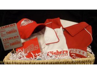 This basket includes 1 men’s XXL 100% polyester "Fishers Tigers" golf shirt, 1 women’s small (runs small) 100% polyester "Fishers Athletics" golf shirt, 1 M/L men’s "Fishers Football" ball cap and 2 Adult 2012- 2013 All Sport Passes. No exchange of sizes.