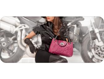 This quilted mid-size shopper is made of scratch-proof Italian leather. Features include: signature flower turnlock closure, chain strap interwoven with leather. Outer slit pocket on reverse for easy access to cell phone or glasses. Inside: center divider zip compartment, multiple pockets, key clip holder and mirror. All Eric Javits bags are lightweight and durable.