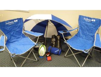 Tailgate Package – this package includes 2 chairs, 1 umbrella, a coffee thermos set, 12" charcoal grill, blanket (all with the Anthem logo), "Invictus" movie, rugby ball and 1 pair of rugby socks.