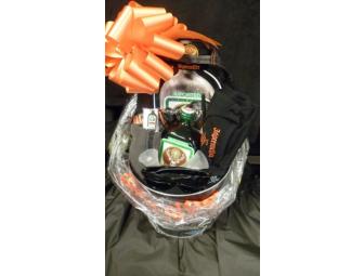 This Jager bucket includes several Jager items including a bottle of Jager, tray, 2 shot glasses, lanyard, sunglasses, 2 t-shirts, a ball cap and flip flops, small bar sign, keychains and other small goodies.