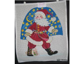 Decorate for the Holidays after you complete this Hand-painted Santa Claus needlepoint canvas. Threads included. Canvas 21" x 25".
