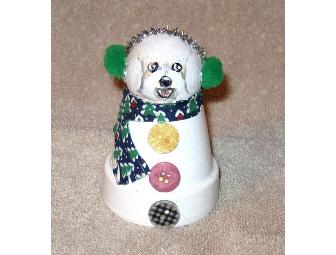 Artist Manuela Quick hand painted a Bichon face on this so very cute snowman.