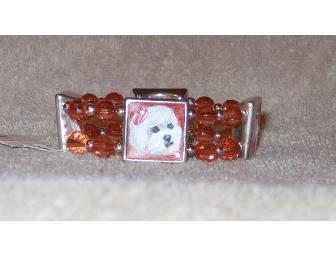 Artist Manuela Quick has painted adorable Bichons on four stations of this bracelet. Her work is incredibly detailed on the 3/4"x3/4" stations.