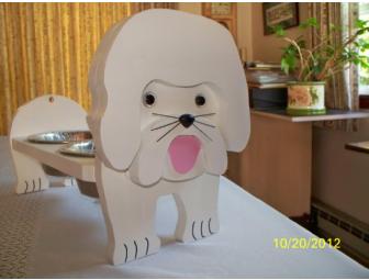 Isn't it time your Fur Baby had a nice place to enjoy mealtime? This feeding station is hand-made from wood and includes two stainless steel bowls (one quart capacity & dishwasher-safe). The approx measurements are 17.5"L x 7"W x 11"H. The feeding station is really quite cute and unique--just like your very own Fur Baby!