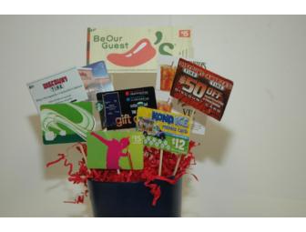 This package includes $50 Chili’s gift certificates, $10 Starbucks card, $12 Kona Ice punch cards, $15 I-Tunes card, $25 Scotty’s Brewhouse certificate, $20 Ruby Tuesdays, 2 VIP McAlisters’- a complimentary lunch or dinner and $50 off the purchase of 4 tires at Discount Tire
