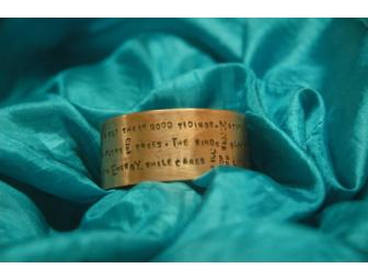 Copper cuff handcrafted on St. John by Karen Calandra.  The cuff is inscribed with a famous quotation from John Muir: