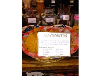 This charming tin, decorated in dog bones and measuring 9 1/4"x5"x3 3/8", is filled with delicious cookies for your best four-legged friend. This tin is filled with Dawgoritos. Ingredients are human grade and natural. No salt, sugar or any preservatives are added to these tasty treats.