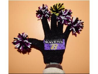 Pair of Hand Knit Ravens Pom Pom Gloves