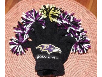 Pair of Hand Knit Ravens Pom Pom Gloves
