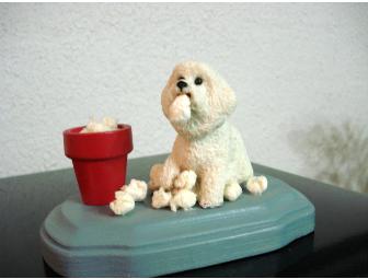 Adorable Sculpture of A Bichon raiding the trash can.