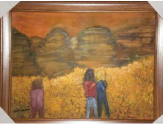 Framed oil painting entitled "Badlands".