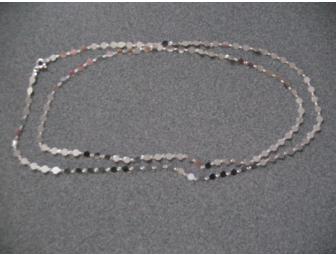 Fun sterling silver necklace with small, polished flat discs and links. Lobster claw clasp. Highly reflective & glittery. Made in Italy.