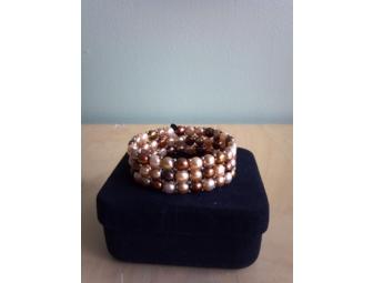 Freshwater pearl stretch bracelet in lovely brown tones and sterling silver accents.