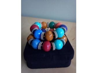 Set of 2 stretch bracelets with multi-colored beads and silver-toned accents.