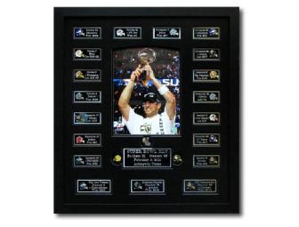 Autographed photo of Aaron Rodgers surrounded by 20 engraved plates that tell the story of the Packers’ 2010 Super Bowl Season