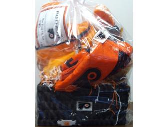 This gift basket is perfect for any Flyers fan. The basket includes: autographed Brian Boucher puck, XL t-shirt, bag, key chain, pen, cup, sunglasses and more!