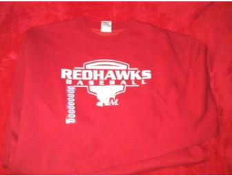This is a great holiday gift for the Red Hawks fan in your family! They will love wearing this comfortable red crewneck sweatshirt with "RedHawks Baseball" screenprinted on the front. Size is Adult Large.