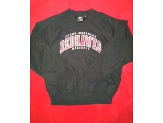 You'll be in style wearing this black pull over wind jacket with "Fargo-Moorhead RedHawks Baseball" tackle twilled on the front in red and white letters. It would also make a great gift for any RedHawks fan! Size is Adult Small.
