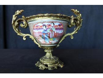 This French, bronze, mounted Chinese-export centerpiece will definitely be a great conversation piece to add to your living room or dining room collection. Circa 1890