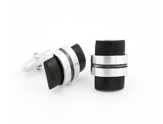 These sleek cufflinks from renowned jeweler Catherine M. Zadeh are the perfect finishing touch to a sharp ensemble. Made of sterling silver, these polished pieces feature a striking bridge and ebony horn.