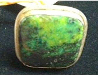 This 1" x 1" dramatic square ring in green and black agate is naturally elegant, framed in delicately etched silver with a decorative band etched around the ring itself. Size 9.