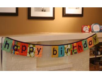 Let the good times roll with a handmade, 100% cotton, reusable birthday banner! The banner reads "Happy Birthday" and comes in its own drawstring bag for easy storage. It makes a bright addition to family celebrations for years to come!