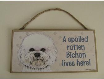 Cute Bichon Frise sign to hang on wall or door. the size is 5" x 10"