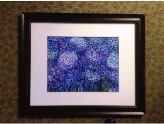 High bidder receives a nicely framed spray water color in shades of cobalt blue on Yupo paper.