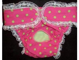 Bikini - Pink and lime dots and backing. 100%washable cotton/fleece. Waist