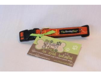 Dress your doggie in style with this adorable collar in size Small - fits neck sizes 10" - 15". This collar uses nylon webbing and is sewn with an industrial strength machine using bar tack stitching at all stress points for extra durability. Each collar features a high quality Quick Release Buckle, Diecast Zinc D-Ring, and is fully adjustable. The Sewing Dog takes pride in everything they sell, from the materials they select, to the crafstsmanship that goes into each and every dog collar. Made by dog lovers for dog lovers!