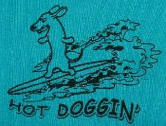 Hang Ten! Fun lovin' Doxie dudes who enjoy being the center of attention will look totally awesome in our Hot Doggin' tee.