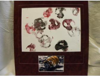 Laurel, Red River Hog, is an unusual artist in that she uses her versatile snout to make some of her beautiful artwork! She has combined red and black tempera paint to go on a white paper background. Fast Frame's professionally cut matte is also unique in that it has a velvet texture! The matte is a burgundy color with a white bevel and accent line. Dimensions: 17 7/16" x 19 1/8".