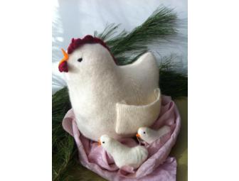 Merino felted "Henny Penny" with baby chicks