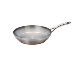 Form and function come together beautifully in the polished stainless steel finish of this Anolon Nouvelle Copper Stainless Steel skillet. Crafted with a layer of copper on the bottom, this collection provides optimum heat conduction and excellent cooking performance. It features a double full cap base: a layer of copper, encapsulated with aluminum, followed by stainless steel. The impact-bonded magnetized stainless steel cap on the bottom makes this cookware suitable for all cooktops, including induction burners. Its generously appointed cast stainless steel handle is dual riveted and oven safe to 500°F. This skillet is also dishwasher safe.