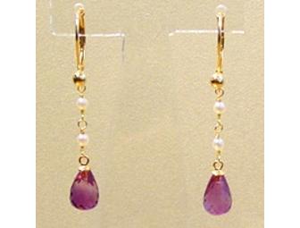 Amethyst, Gold and Pearl Briolette Earrings