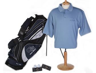 Includes standard self-propped lightweight Club Glove golf bag, one box of Callaway Golf Balls and one polo shirt (Cutter & Buck, Men's XL/TG, Light Blue).