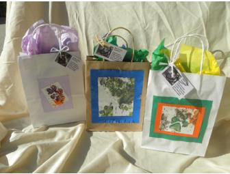 These bags will make your gifts unique! "Bakari", African Painted Dog, has beautifully decorated a white craft bag and a brown craft bag, while "Cruella" has decorated one white craft bag. The bags include tissue paper and a tag describing the artist. Dimensions of Bags: 10 1/2" x 8"