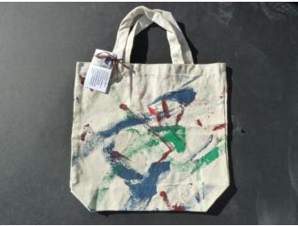 This unique tote bag was decorated by "Jana" African Elephant.  It features red, blue and green paint on both sides of the medium tote bag.  Dimensions: 13" x 12 1/2".