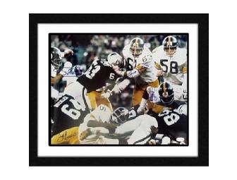 Bids are for a limited edition Steel Curtain hand-signed and framed 16x20 photo. The members of the Steel Curtain whom have signed this photo include: Joe Greene, LC Greenwood, Ernie Holmes, and Dwight White. The Steel Curtain helped lead the Pittsburgh Steelers to four Super Bowl Championships. Item comes professional double-matted and framed. Certificate of Authenticity included.